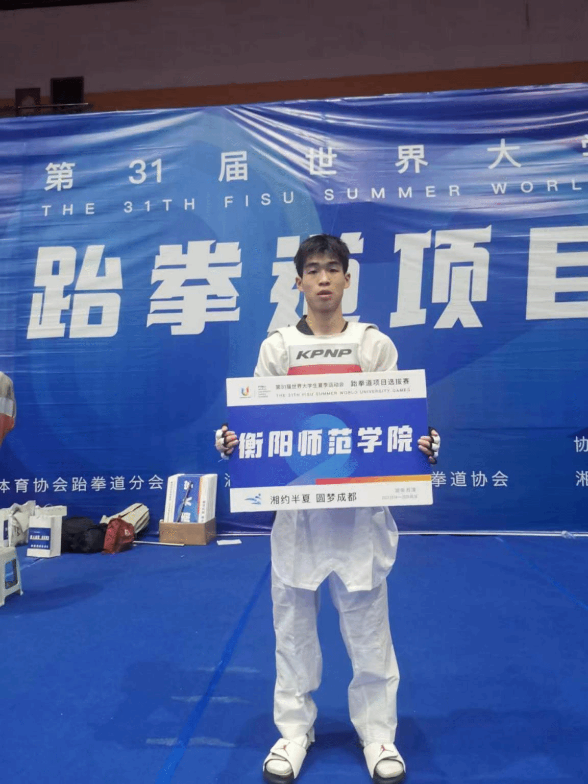 根据成都世界大运会跆拳道队入选办法,获各单项冠军的运动员将直接入选第31届世界大学生夏季运动会中国大学生跆拳道队大名单,入选者将代表中国大学生参加今年7月28日-8月8日在中国成都举行的第31届世界大学生夏季运动会,为国争光。因此,刘磊将代表中国大学生参加2023年成都世界大学生运动会,亦是2023年湖南唯一一名获得世界大学生运动会跆拳道项目入场券的大学生。这是继我校跆拳道队多次获得全国冠军之后又一重大突破。