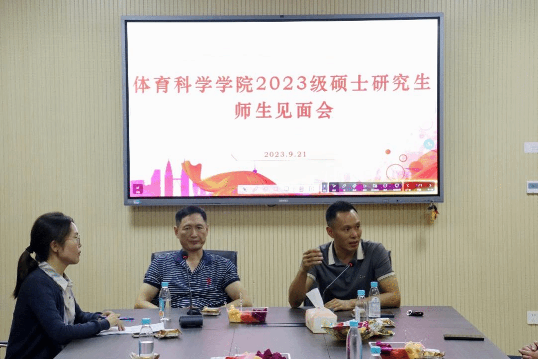 见面会上,yl8cc永利官网院长江亮和党总支书记胡建忠分别发言。江院长提出了四点要求:一、研究生群体是知识分子群体,要有批判性思维的能力;二、研究生阶段学习时间紧、任务多,同学们要抓紧核心技能的学习,加强专业能力的培养;三、同学们要跨学科学习,拓展知识边界,学会运用交叉学科的理论研究体育;四、建立良好的师生关系,促进师生互动的有效性。