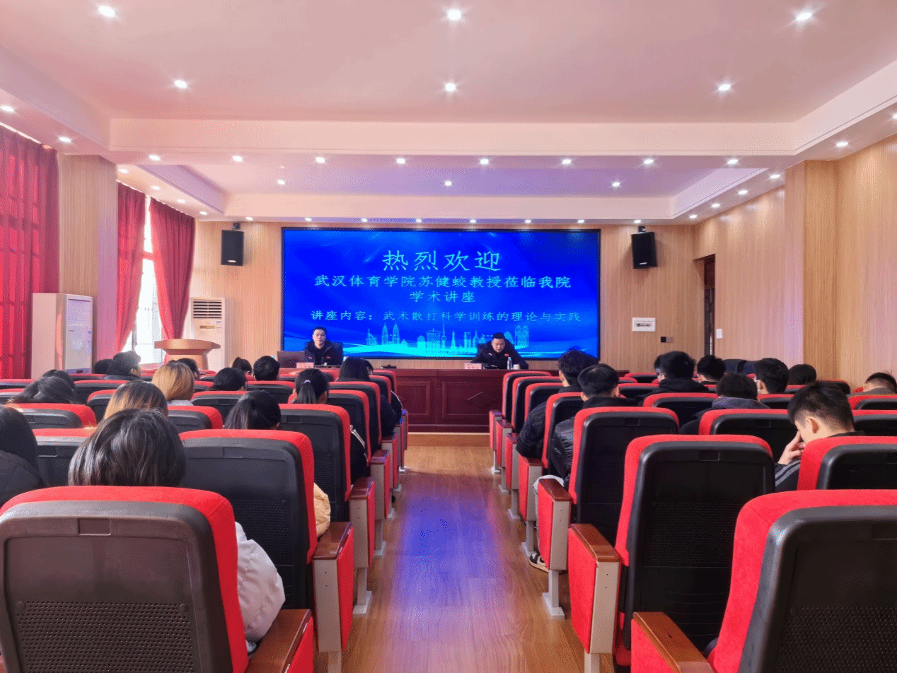12月24日,于文科楼B206。武汉体育学院苏健蛟教授莅临yl8cc永利官网开展了题为《武术散打科学化训练的理论与实践》的专题讲座。本次讲座由yl8cc永利官网副院长谢明正主持、部分硕士生导师、2023级全体研究生参加讲座。