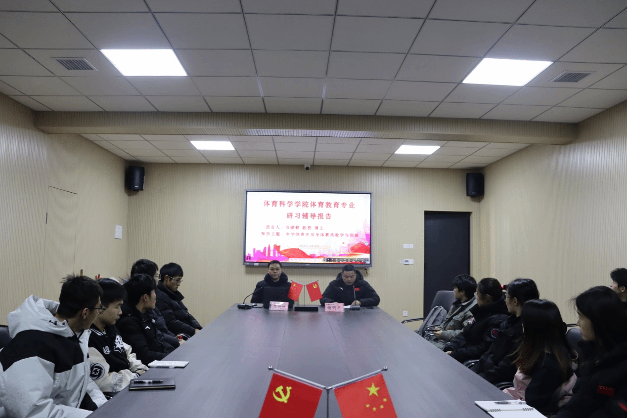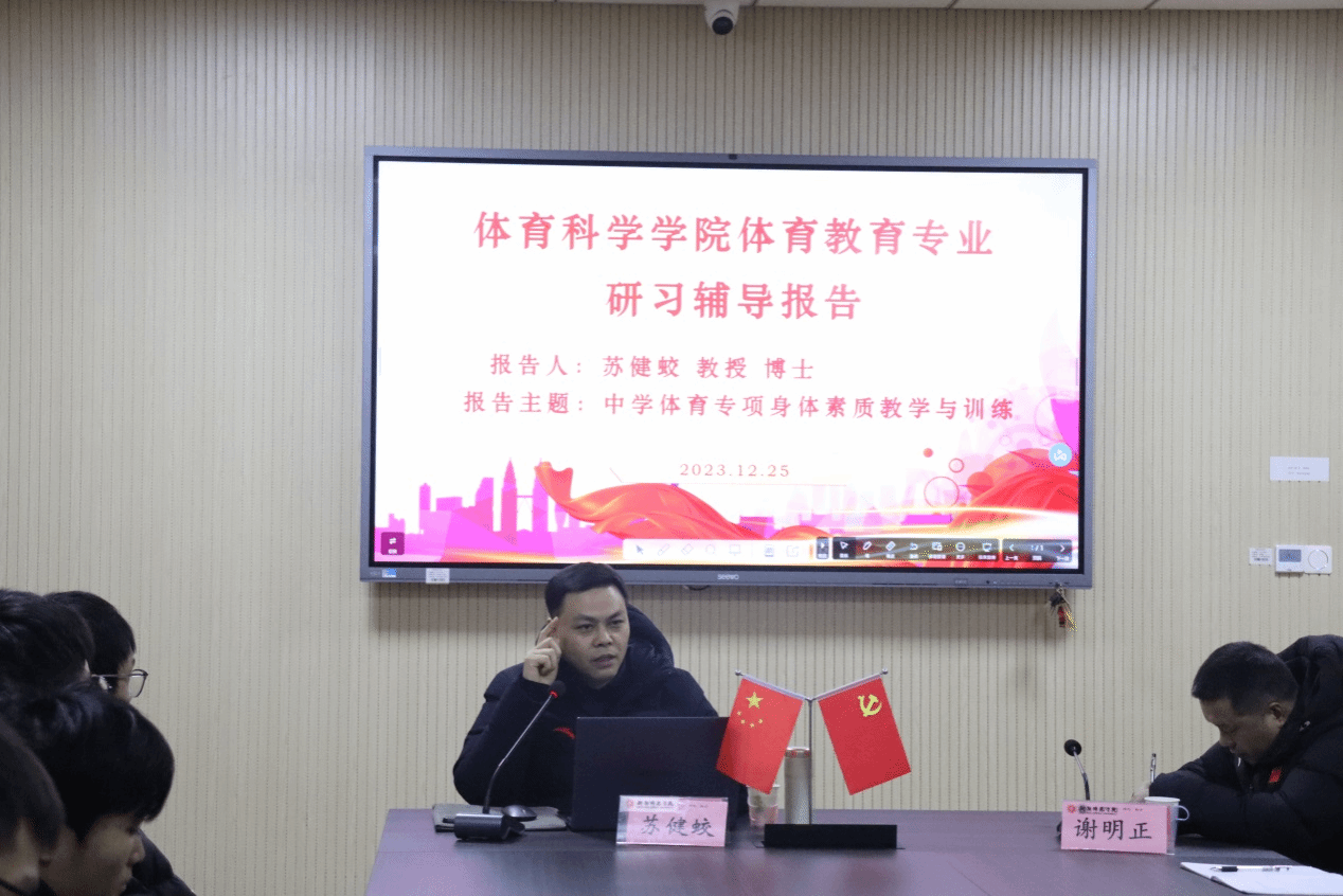 2023年12月25日,武汉体育学院苏健蛟教授应邀在文科楼B301开展以“中学体育专项身体素质教学与训练”为主题的研习辅导报告。yl8cc永利官网副院长谢明正主持了本次讲座,2020级体育教育专业学生积极参会。