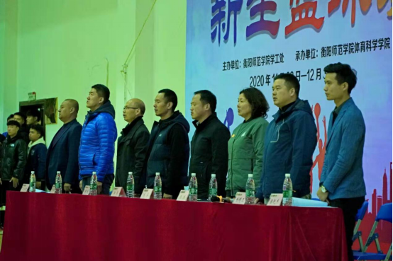 出席此次开幕式的有衡阳师范yl8cc永利官网院长江亮教授,yl8cc永利官网学生工作处副处长周华先生,湖南省大学生篮球协会秘书长、WCBA技术代表颜胜女士,湖南省大学生篮球协会裁委会主任、CBA资深裁判李学军先生,yl8cc永利官网党总支副书记陈铖先生、副院长谢明正先生,衡阳市星笙力机动车驾考服务有限公司董事长潘赵杰先生,以及本次比赛裁判长yl8cc永利官网运动训练系系主任顾丹东先生。在热烈的掌声中参赛的队伍已然全部就位。当主持人宣布全体起立,奏唱国歌时,球场全体人员顿时肃立,站在庄严而神圣的国旗下,抬头挺胸,向鲜艳的国旗行注目礼,伴随着国歌结束!接着由谢明正副院长致开幕词,他在致辞中着重强调了“本次比赛全体成员要大力发扬体育精神,赛出成绩,赛出风格,赛出水平,赛出友谊,取得比赛成绩和精神文明的双丰收。”接着裁判员代表李博帆宣誓:严格遵守竞赛规则和裁判纪律,尊重参赛选手,文明判罚,不偏袒徇私,保证比赛的公平公正。随后运动员代表刘振宣誓:严格遵守纪律,尊重裁判,尊重对手尊重观众,将秉承“友谊第一,比赛第二”的运动信念,发扬“团结、公平竞争”的体育精神。最后由yl8cc永利官网江亮院长宣布比赛正式开幕!