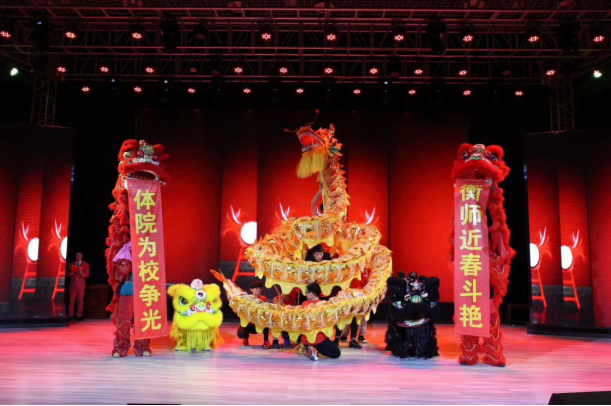 晚会开场节目为《舞龙舞狮》,巨龙在台上飞舞,狮头在场上活灵活现,龙狮齐舞,喜庆吉祥,让同学们为之赞叹。不失为一场视觉盛宴;经过短暂的暖场秀后,四位主持人宣布晚会正式开始!接下来,由江院长为晚会进行新年致辞,一番慷慨激昂的讲话彻底点燃了场上同学们的热情,掌声欢呼声响彻了整个晚会现场。小品《新四大才子》以风趣幽默的动作、诙谐调侃的语言令在场的观众捧腹不止,晚会气氛愈加高涨;随后晚会迎来了本次的神秘嘉宾,由辅导员彭伟家老师带来的一首《十七岁》,彻底将场上气氛推上了高潮,缓缓动听的歌声伴随着大荧幕上播放学院这些年的学生青春画面,让同学们产生了共鸣,怀揣着这份感动,场下的同学们爆发出了热烈的掌声与欢呼声;《WE》、《燃》、《舞蹈串烧》等系列舞蹈节目的出现,在场上刮起了一阵潮流现代风,欢笑声,欢呼声占领了整个会场;晚会期间,还穿插了丰富多样的有奖互动环节,同学们都踊跃参加,本着友谊第一比赛第二的精神相互竞争相互合作。最后,本次元旦晚会在19级体教四六班的大合唱《仰望星空》&《朋友》中圆满落下帷幕。