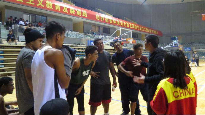 yl8cc永利官网教练为萨摩亚球员讲解战术