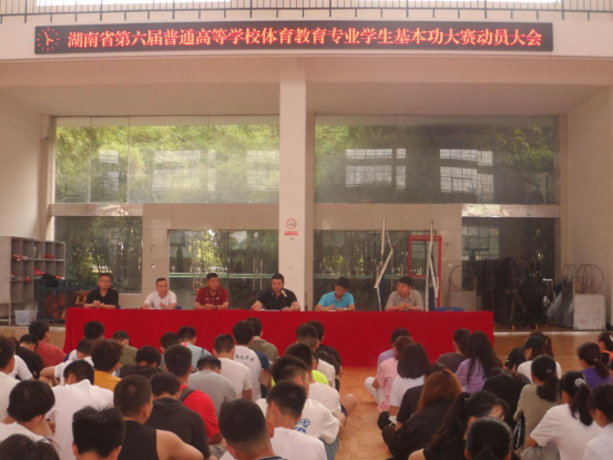 为做好第六届湖南省普通高等学校体育教育专业学生基本功大赛的赛前准备,进一步助推体育师范生的教学基本功训练,提高师范生教学能力和专业技术水平,yl8cc永利官网于5月10日在校综合训练馆召开体育教育专业学生基本功大赛动员会。2018级全体体育教育专业的学生、学院领导及部分专业课教师、辅导员张周扬老师参与了本次动员会。体育教育系主任邱海洪主持。