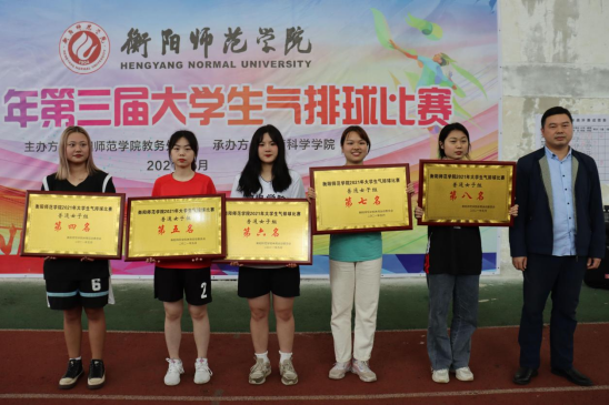 谢明正副院长为普通女子组获得4——8名的代表队颁奖