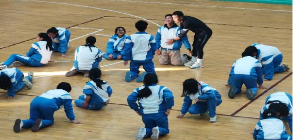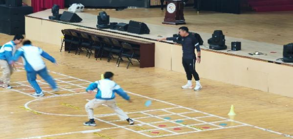 活动现场,杨刚老师教授的快速跑与综合体能练习趣味十足,特别是“五子棋”游戏,不仅让学生在体能上得到提升,更在团队协作上全力以赴!杨老师授课中一直关注着学生的动作姿势,并及时纠正,在进行有难度动作时及时组织保护。