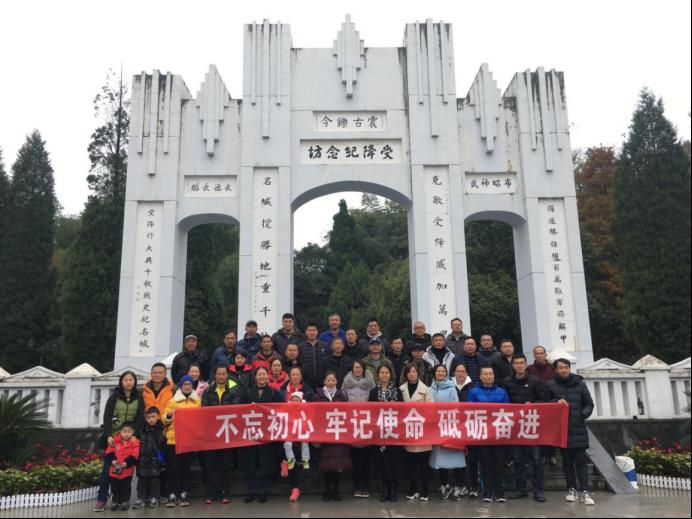 为深入贯彻新时代中国特色社会主义思想和党的十九大精神,积极开展“不忘初心,牢记使命”主题教育,回顾光荣革命战斗岁月,继承弘扬爱国主义精神和民族传统,2019年11月30日—12月1日yl8cc永利官网教工党支部组织全体教工党员举行了“不忘初心 牢记使命 砥砺奋进”主题党日活动,到抗日战争受降地—怀化芷江,参观了受降纪念坊、受降旧址、纪念抗战胜利展览馆等教育基地。