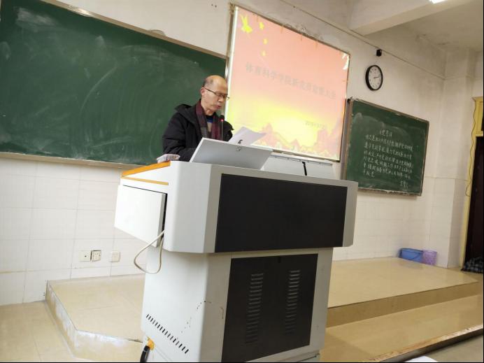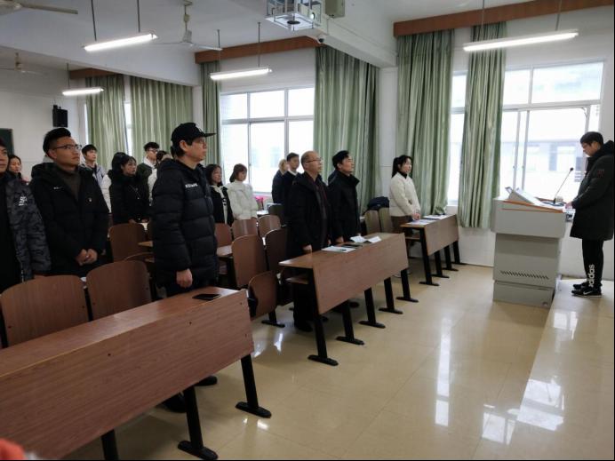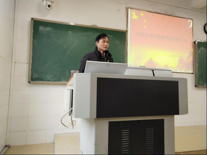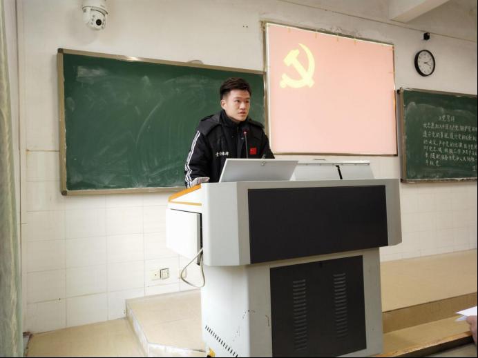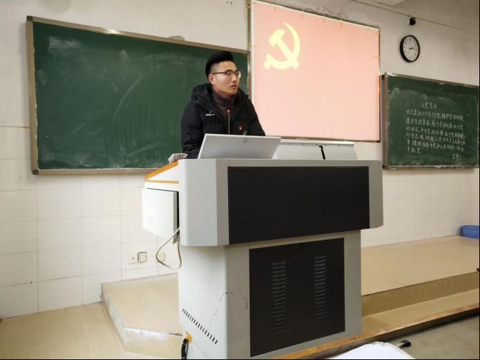 大会伊始,全体参会人员起立,奏唱《国际歌》。庄重的奏唱结束后,主持人彭伟家老师宣布会议开始。陈铖副书记宣布了新党员名单。随后由学生支部委员李佳欣带领14名新党员宣誓,宣誓过程庄严凝重,新党员们声声震彻的入党誓词代表了他们对党最忠诚的决心。接着新党员代表蒋志景以及入党积极分子代表阳卫作了发言。他们的发言说出了全体预备党员及入党积极分子在党组织的关怀下,要以先进模范为榜样,坚定理想信念,认真工作,严格要求自己,发挥先锋模范作用,努力为社会经济的发展贡献自己的力量。最后,周仲景书记对预备党员提出了三个希望:1、要突出讲政治,以党员的标准严格要求自己。2、要自觉接受组织的教育、管理和监督。3、要积极参与“对标争先”活动。