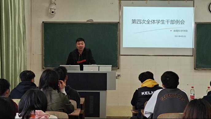 2021年4月1日中午12:40,yl8cc永利官网于数学楼406教室召开第四次全体学生干部例会。参加此次会议的有yl8cc永利官网党总支副书记陈铖,辅导员郭丽、张周扬老师和全体学生会成员。