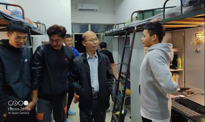 辅导员老师带领学生会成员进行卫生检查