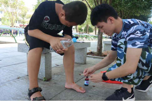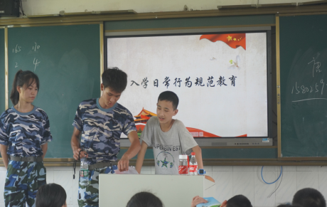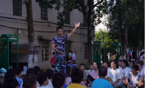 也许,学生眼中的“哥哥”“姐姐”并不温柔:训练要求高、纪律要求严。但是,铁血战士也有万般柔情。他们既严格要求学生,也时刻关心学生。学生感觉不适了,就原地休息;学生不小心受伤了,就送去关心。操场上、教室里,无处见不到实践团成员的身影,他们给学生表演、带学生唱歌……他们既是学生的老师,也是学生的朋友。训练时间,大家遵守纪律,刻苦训练,多么配合;休息时间,大家互动交流、才艺展示,好不热闹。