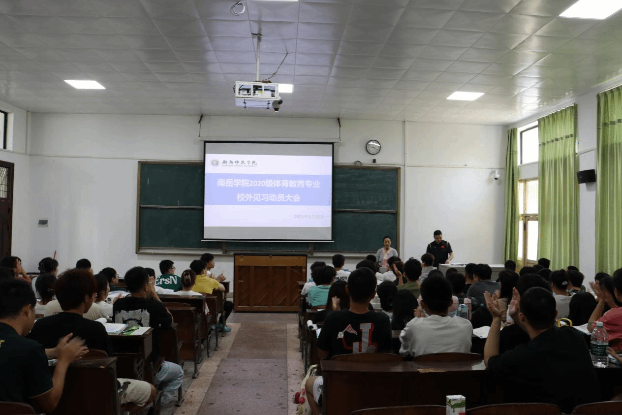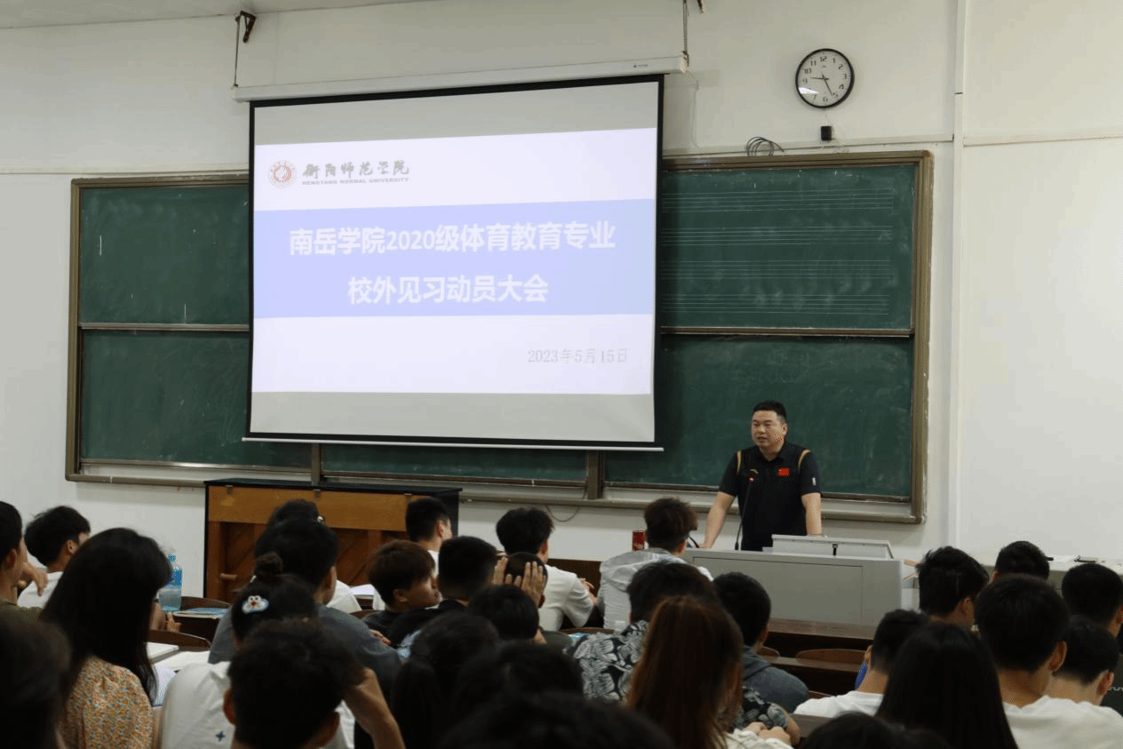 2023年5月15日上午,南岳学院体育系在西校区学奎楼104教室召开了2020级学生专业见习动员大会。yl8cc永利官网副院长谢明正、基础理论教研室主任邹娟花、张修昌博士及2020级全体学生参加会议,会议由邹娟花老师主持。