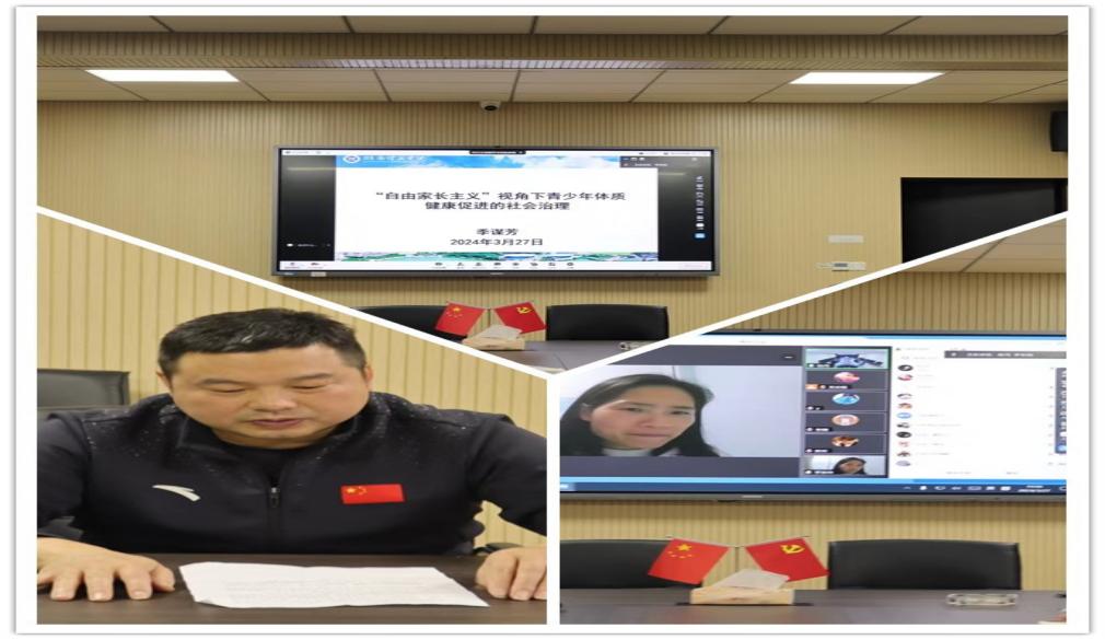 季谋芳博士的报告主题为:“自由家长主义”视角下青少年体质健康问题的助推策略。季博士结合自身多年教育教学改革工作实践,以及长期对青少年体质健康问题的关注与研究,通过大量数据、案例呈现了青少年体质健康现状与现存主要问题,解释了何为“自由家长主义”及其与青少年体质健康问题之间的关系,重点阐述了如何提升青少年体质健康。